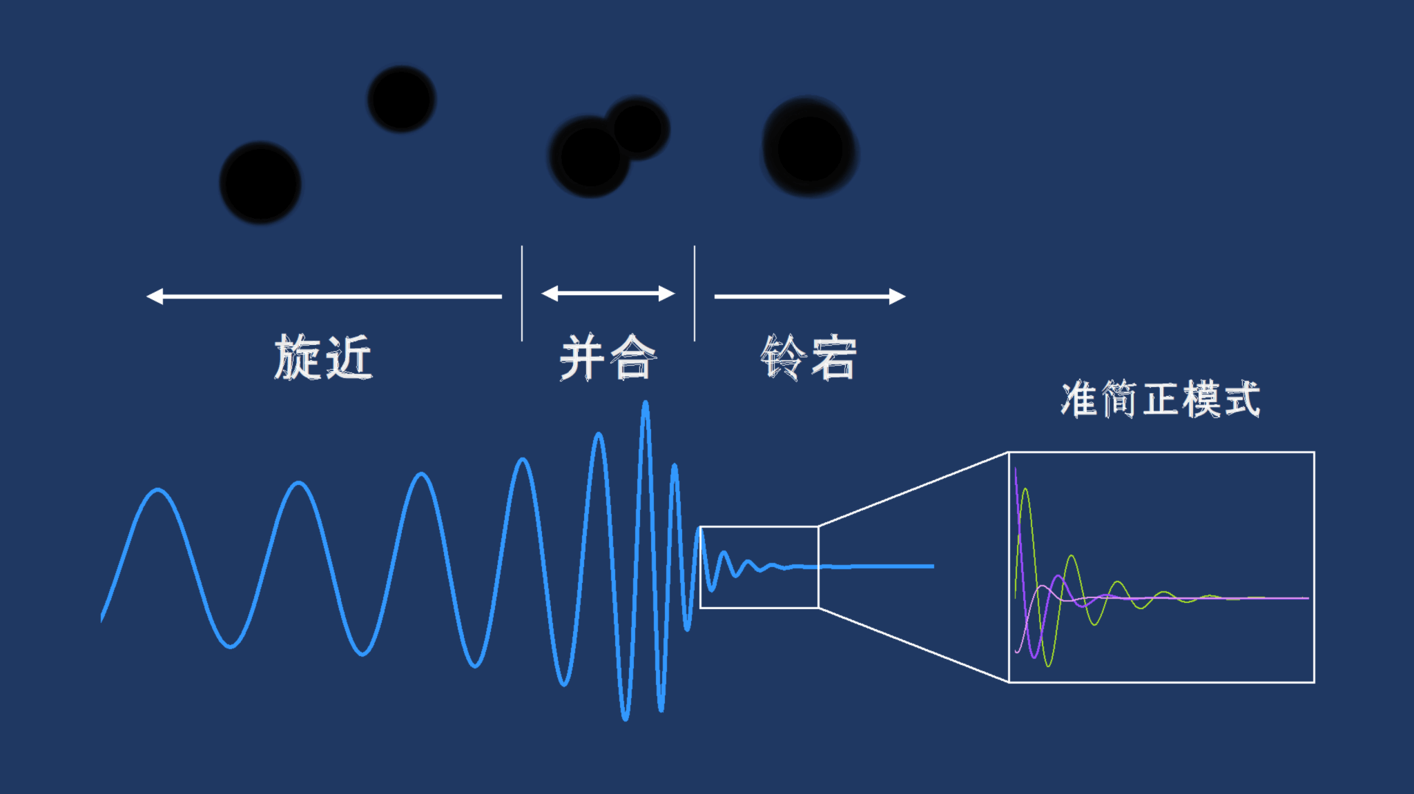 图1:双黑洞并合的铃宕信号示意图;该信号往往被建模为多个准简正模式的叠加(来源:Y. Dong & Z. Wang)