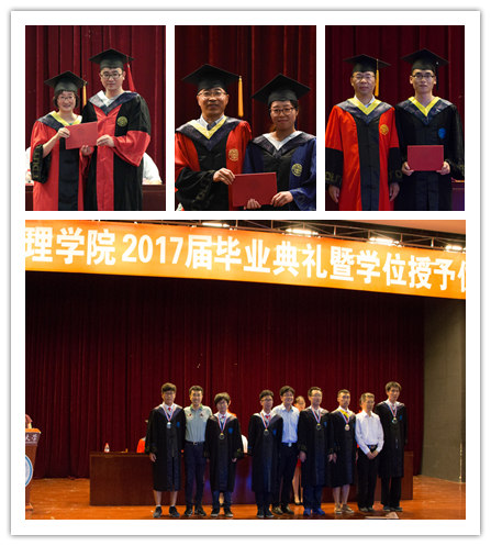 毕业典礼在庄严的国歌声中正式开始,在徐立昕、陈茂笃教授分别宣读了学院2017年授予学士、硕士、博士学位学生名单后,三个专业负责人博士生导师宋远红教授、孙长森教授、梁红伟教授亲手为每一名毕业生拨穗并授予学位证书。之后学院对校先进班集体物1305班,学院先锋党支部本2013学生党支部,辽宁省、大连市、校优秀毕业生等优秀毕业生集体和个人进行了表彰,对他们四年的努力与付出予以充分的肯定。