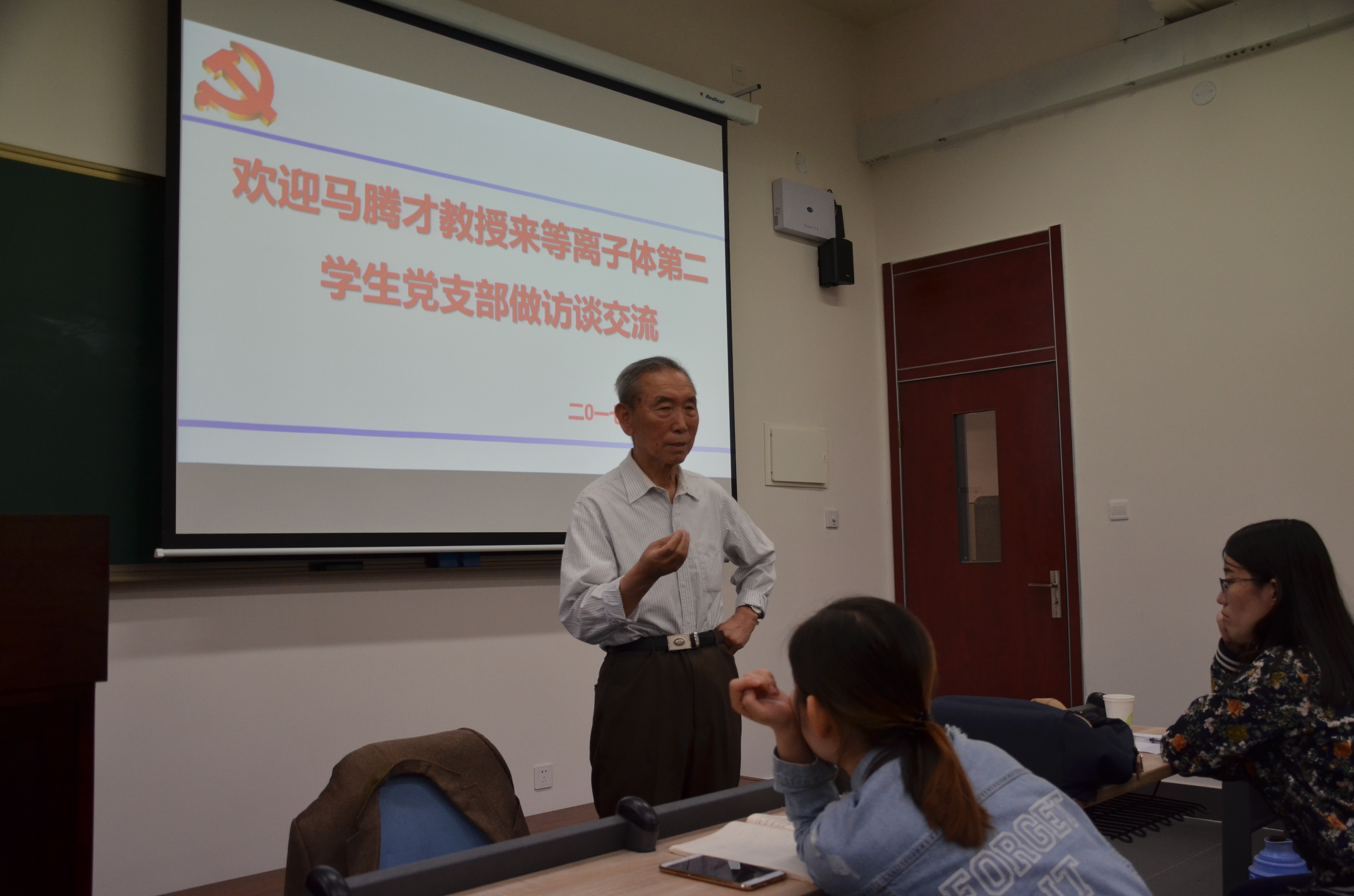学院硕博等离子体第二学生党支部主办“红色筑梦人——教授面对面”系列党课活动,在首期活动中邀请到三束实验室首届系主任、85岁高龄的老党员马腾才教授,为研究生党员动情讲述学院等离子体物理学科发展史、三束实验室建设史。“青年人应有自己的理想,具备战略性的眼光,在工作生活中学会团结、包容、理解,始终做到不忘初心、不追名逐利,要以事业为重、以国家的利益为重。”