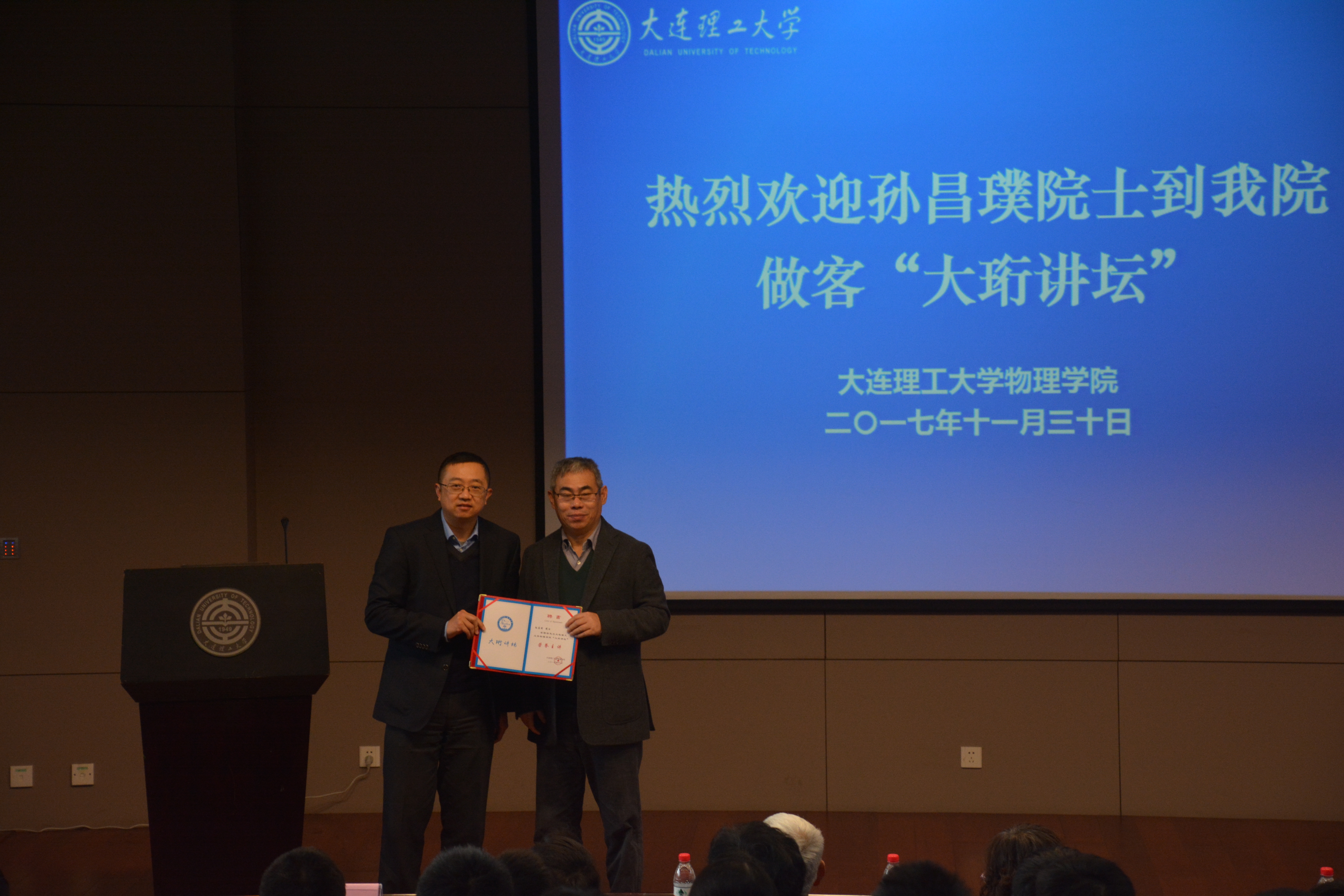 在讲座开始前,问鼎网中国赵纪军院长向孙昌璞院士颁发“大珩讲坛”荣誉主讲聘书。