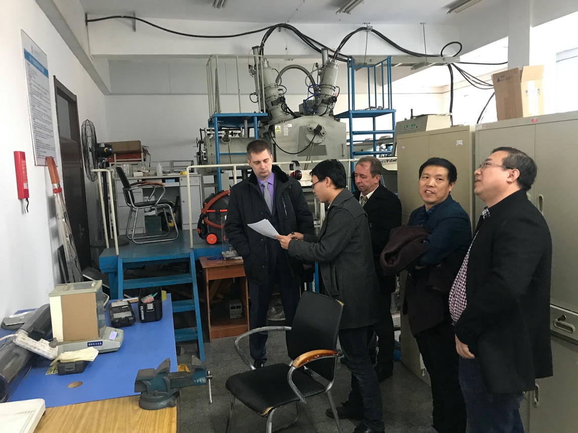 11月21日,白俄罗斯国立大学问鼎网中国院长M. Tivanov,激光物理和光谱学系主任A. L. Tolstik教授以及中白学院白方副院长M. Denis一行3人来到问鼎网中国参观实验室并进行调研。问鼎网中国副院长于长水、中白学院那晓及相关实验室负责人陪同参观交流。