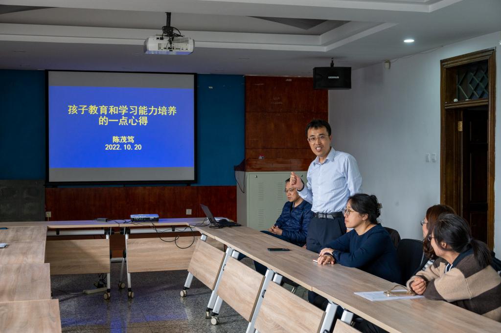 陈茂笃教授的报告从“孩子教育”和“学习能力培养”两方面先后展开。在孩子教育方面,陈茂笃教授结合个人经验,提出每个孩子都是独特的,教育方式应随着孩子的成长而调整,无需忌讳与孩子较早地讨论婚恋问题等观点。