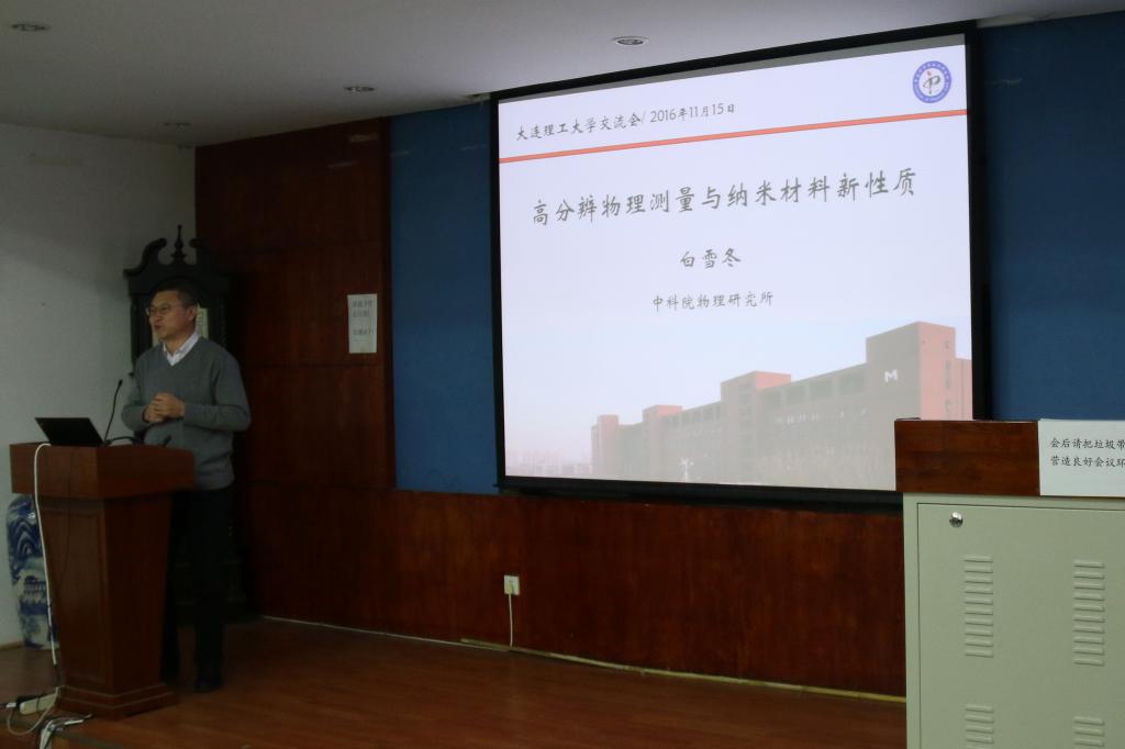 首场讲座《高分辨物理测量与纳米新物性》由中科院物理所博士生导师、表面物理国家重点实验室课题组组长、国家杰出青年基金获得者、973项目首席科学家、国家重大科研装备研制项目负责人——白雪东研究员主讲。白老师的讲座深入浅出、内容生动,用一个多小时的时间为听众们细致介绍了纳米科学中的观测技术和操纵技术,结合着物理所课题组的相关研究近况,为观众们讲解了微观时间的诸多新奇物性和科研进展。