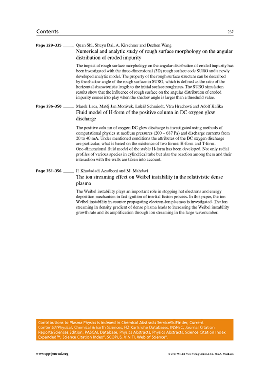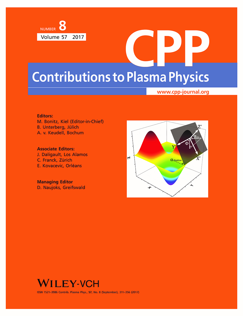 John Wiley & Sons,Inc.公司成立于1807年,是世界范围内科学、技术和医学(STM)类的领先出版商,其《Contributions to Plasma Physics》期刊主要刊登等离子体学和气体放电领域的相关研究,包括磁约束下的基本等离子体现象以及等离子体与壁相互作用。