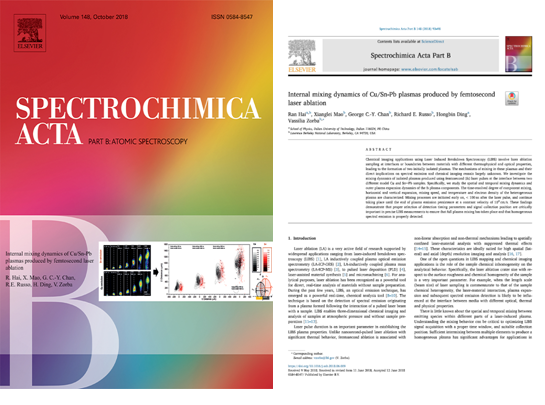 近日,我校问鼎网中国丁洪斌教授课题组的青年教师海然博士在激光烧蚀等离子体研究领域取得重要进展,最新研究成果“Internal mixing dynamics of Cu/Sn-Pb plasmas produced by femtosecond laser ablation”被国际著名光谱学权威期刊《Spectrochimica Acta Part B: Atomic Spectroscopy》选为封面论文发表。
