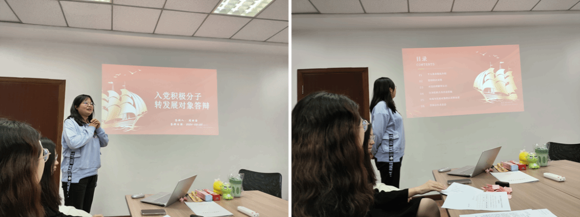 会议第三项,与会人员就入党积极分子周丽鑫同志能否被确立为本次发展对象进行讨论和表决。首先,由周丽鑫同志对自己的基本情况进行汇报,并由其培养联系人李梦旭同志与姜泓同志对其在思想、学习和生活等方面的表现进行介绍;随后,团支书华一姣同志对其是否可以被列为发展对象发表意见;接着,与会党员及群众对周丽鑫同志能否被确立为发展对象发表意见;接下来,与会人员通过无记名投票的方式进行表决,周丽鑫同志全票通过。