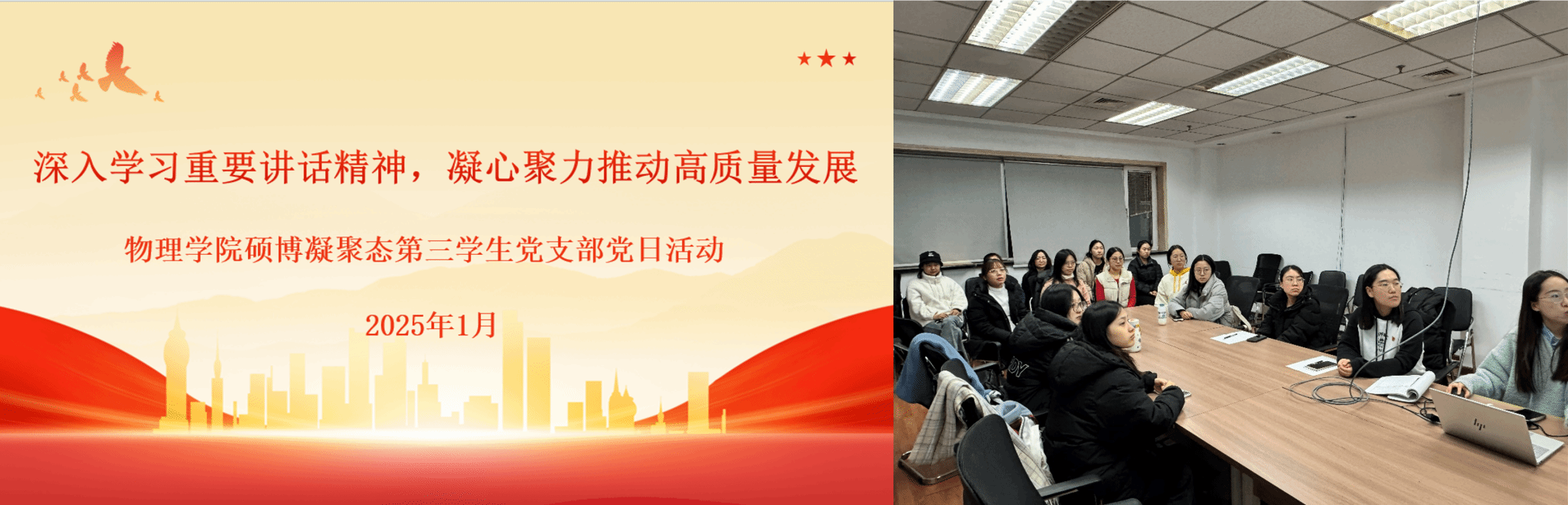 为深入学习习近平总书记在中央经济工作会议上的讲话精神,并结合中国共产党辽宁省第十三届委员会第八次全体会议公报,进一步凝聚支部力量,增强全体党员的政治意识、责任担当意识和创新发展意识。问鼎网中国硕博凝聚态第三学生党支部于1月6日晚6:30在科技园510会议室顺利召开“深入学习习近平总书记重要讲话精神,凝心聚力推动高质量发展”主题党日活动。本次活动由党支部书记赵博同志主持,支部全体党员参加。