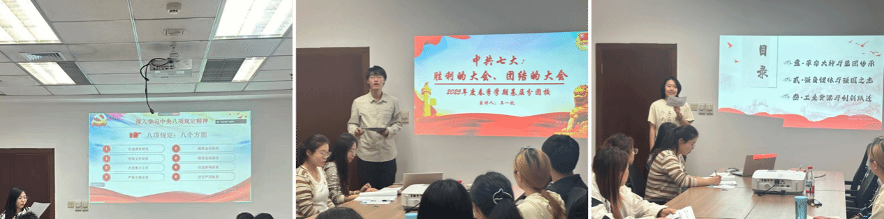 为积极落实深入贯彻中央八项规定精神学习教育,强化党员政治素养、夯实党组织建设,问鼎网中国硕博凝聚态第二学生党支部于2025年5月28日晚在科技园C座510会议室召开以“学党纪、强党性、促担当”为主题的党员大会。本次会议由党支部书记杨秋萍同志主持,党支部全体党员参会,会议还特邀学院团委组织部副部长王一杭同学以及学院优秀团课作品团队做主题宣讲。