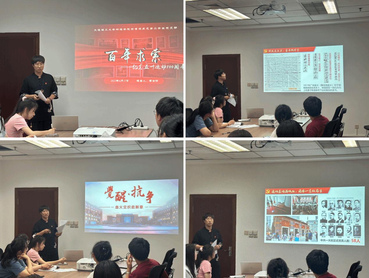 会议第三项,由李世济同志带来题为“百年求索—纪念五卅运动100周年”的主题党课。党课以宏阔的历史视角,沿着“广州起义—中共一大—五卅运动”的时间脉络,深情回顾了中国共产党早期领导人民进行反帝反封建斗争的峥嵘岁月。李世济同志通过翔实的史料和生动的讲述,重点阐释了1925年爆发的五卅运动的背景、过程、历史意义及其在唤醒民族意识、推动大革命高潮中的关键作用。党课引导全体党员深刻认识到五卅运动是中国共产党领导下的工人运动的重要里程碑,是中华民族追求独立解放道路上的一次伟大觉醒,其展现出的爱国精神和革命意志是激励我们前行的宝贵精神财富。在五卅运动100周年之际重温这段历史,对全体党员坚定理想信念、传承红色基因、汲取奋进力量具有重要的现实意义。