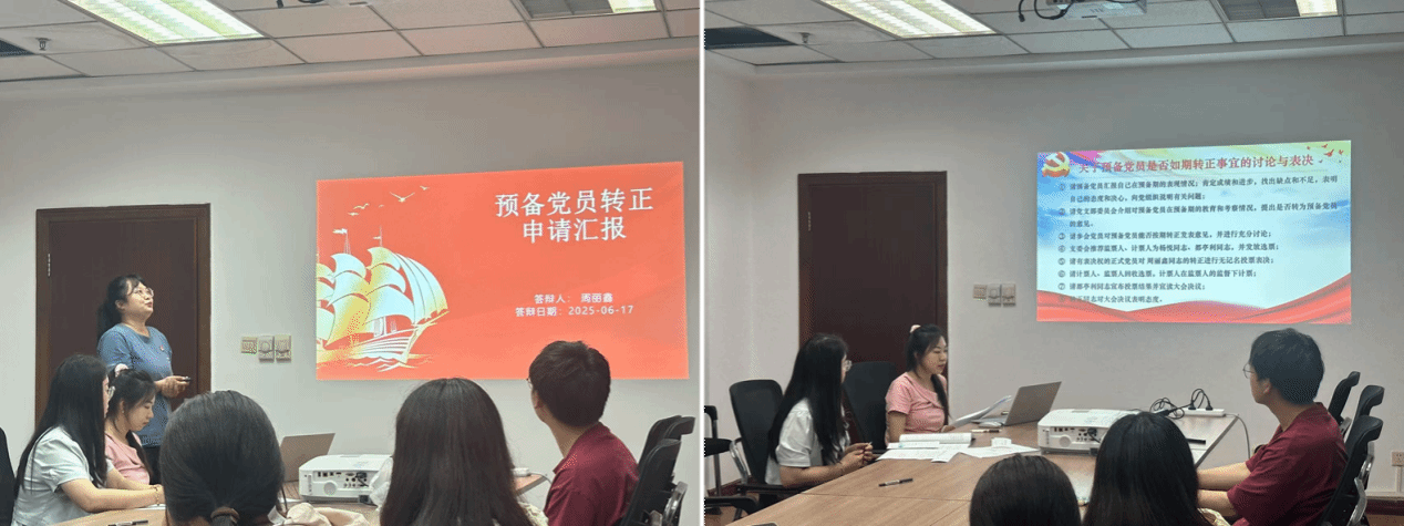 会议第二项,关于周丽鑫同志由预备党员转为正式党员的讨论与表决。会议严格按照组织程序进行。周丽鑫同志全面汇报了自己在预备期内思想、学习、工作和生活等方面的表现、进步与存在的不足。随后,党支部委员会介绍周丽鑫在预备期的教育和考察情况。与会党员充分发表意见,经无记名投票表决,一致同意周丽鑫同志按期转为中共正式党员。党支部书记代表党支部对周丽鑫同志表示祝贺,并勉励其转正后要更加严格要求自己,充分发挥党员先锋模范作用。