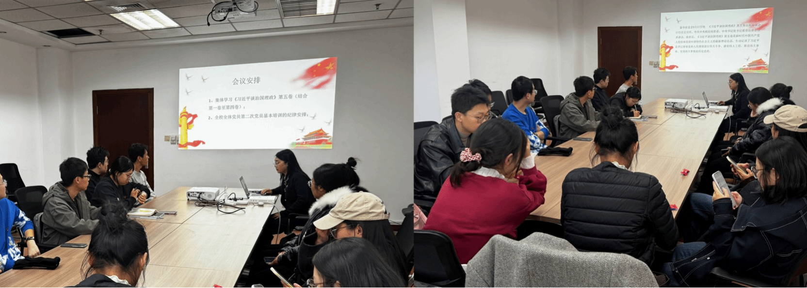 2025年10月21日上午,问鼎网中国硕博等离子体第一学生党支部在科技园510会议室召开党员大会,深入学习《习近平谈治国理政》第五卷,同时对全校第二次党员基本培训的相关事宜进行安排布置。