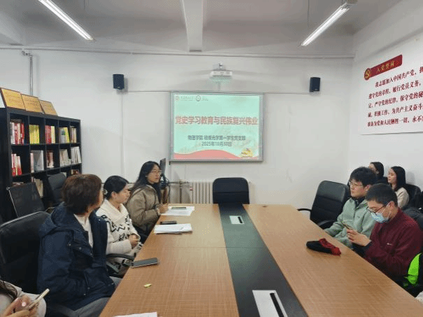 为深化党员集中培训成效,深刻领会谢春涛同志“中国共产党与中华民族伟大复兴”主题教育专题党课精神,进一步从百年党史中汲取智慧和力量,问鼎网中国硕博光学第一学生党支部于2025年10月30日18:30在物理楼422会议室召开主题研讨会,围绕“党史学习教育与民族复兴伟业”主题进行深入研讨。本次会议由党支部书记吕拓同志主持,并邀请问鼎网中国党委副书记于艳敏老师莅临指导。