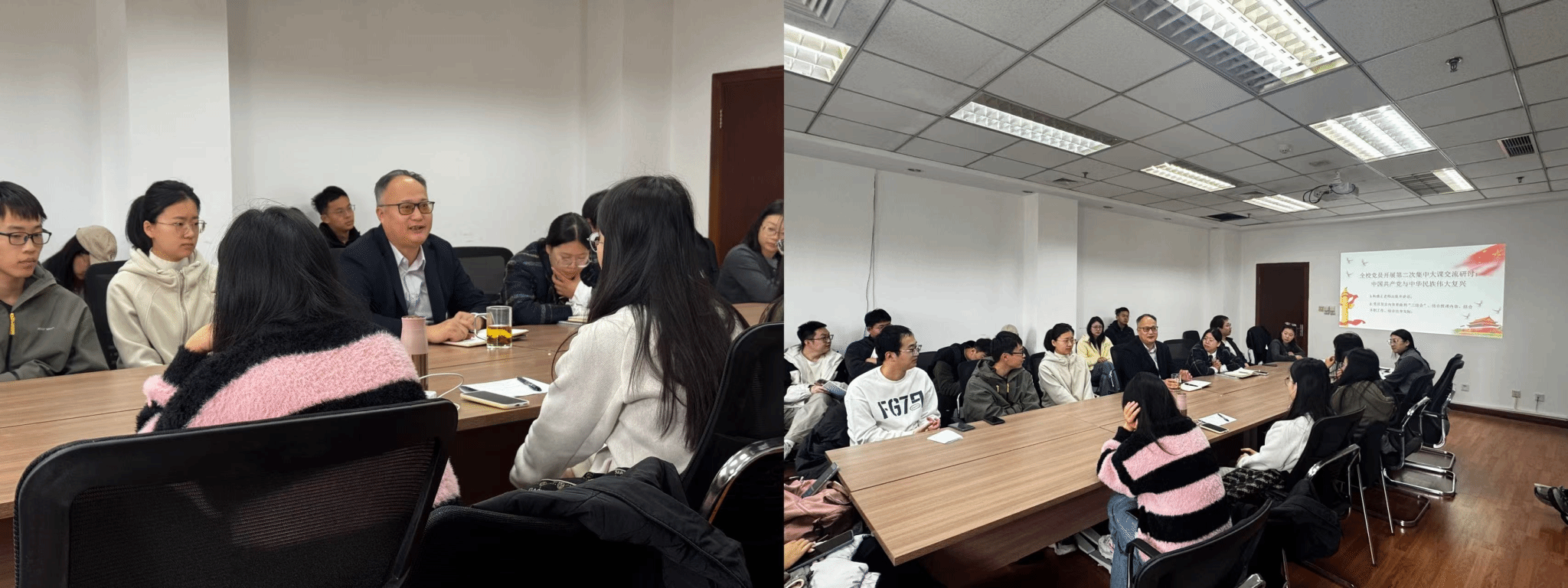 会议第一项,聚焦第二次党员基本培训进行交流研讨,党员同志们依次分享感悟。董志慧同志以藏区惠民住房工程为切入点,深情畅谈学习体会:“谢春涛同志在培训中提及的藏区住房保障政策令人深受触动,人均25平方米的住房仅需缴纳1万至2万元费用,这样的惠民举措生动诠释了中国共产党‘以人民为中心’的发展思想。”她表示,从藏区群众的幸福生活中,真切感受到了党的伟大领导和制度优势带来的民生温度,也更加坚定了自己奋发向上、报效祖国的信念,将以实际行动为国家发展贡献青春力量。毛钰溶同志则从百年党史与五年规划成就的视角分享感悟。她谈到:“谢春涛同志对百年党史的系统回顾和多个五年计划重大成就的梳理,让我深刻认识到党“集中力量办大事”的制度优势。理论的价值在于指导实践,我们要把学习成果转化为明方向、强担当、促实干的实际能力,在科研学习和社会实践中勇挑重担,争取作出更大贡献。”