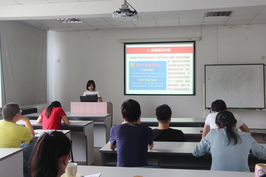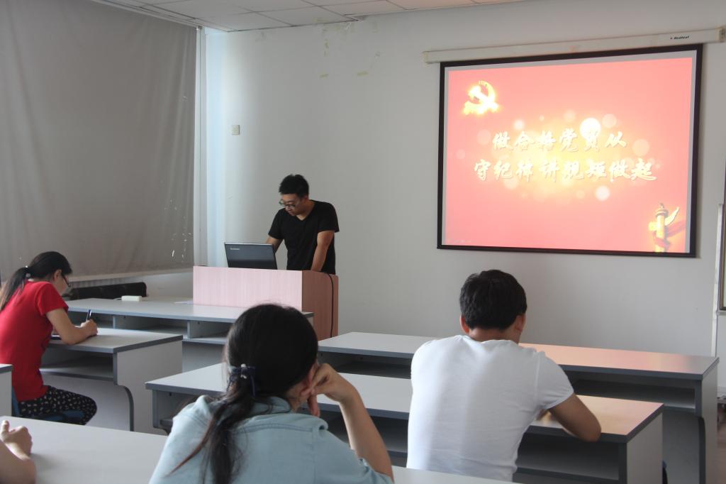 7月1日,物理硕博等离子体01学生党支部在新三束实验室408会议室举行了以“讲规矩,有纪律”为主题的学习研讨会。本次学习会议有三名党员上讲台分别讲述了做合格党员、学习习近平总书记系列讲话和学习党章党规等内容,本次由支部组织委员陈传杰主持。