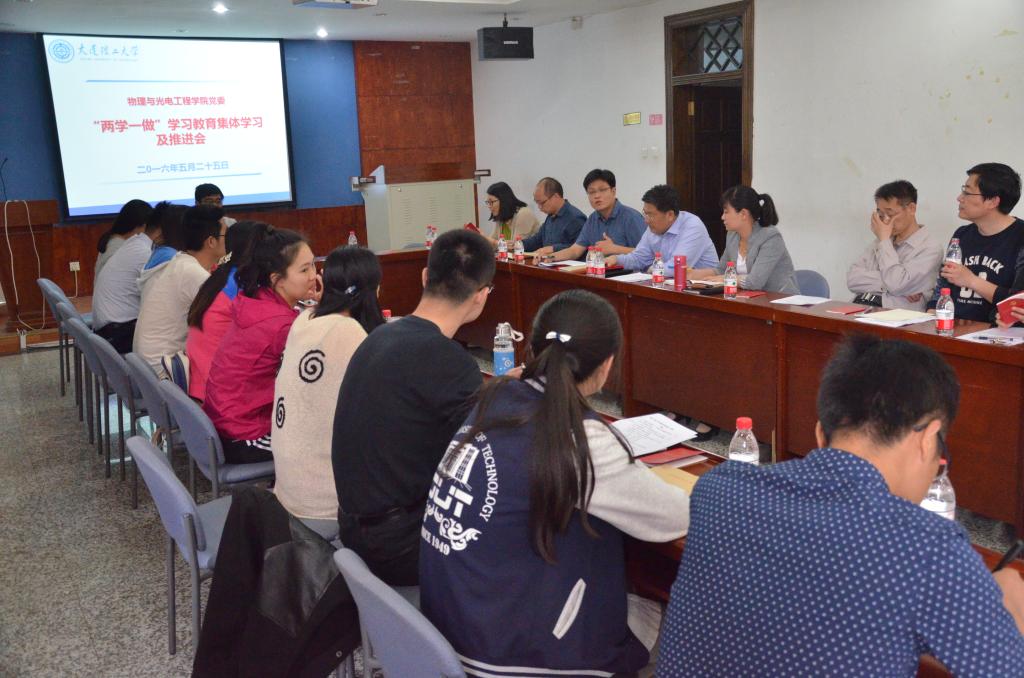 根据学校推进会精神,学院党委调整修订了《物理与光电学院开展“两学一做”学习教育实施方案》,加强对党支部进行全覆盖、全过程指导,要求各党支部书记要承担起主体责任,从严从实落实学习教育。