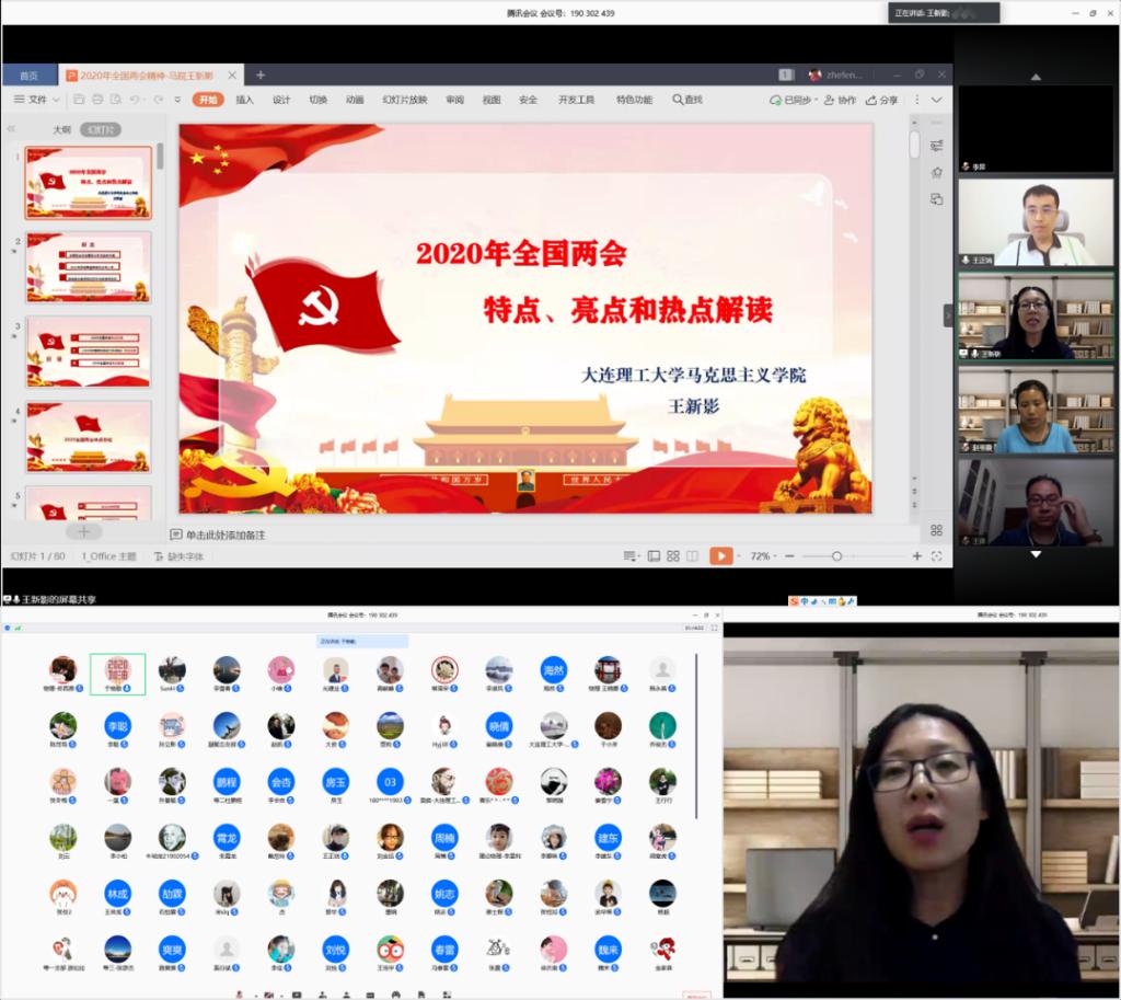 6月29日,学院党委邀请我校马克思主义学院王新影副教授,通过网络为全院师生党员解读2020年全国“两会”精神。王新影在40分钟的时间里,深入浅出地解读了今年“两会”的特点与热点,分析了政府工作报告的亮点,并针对民法典、国安立法等师生党员普遍的关注点进行了更深入的解析。