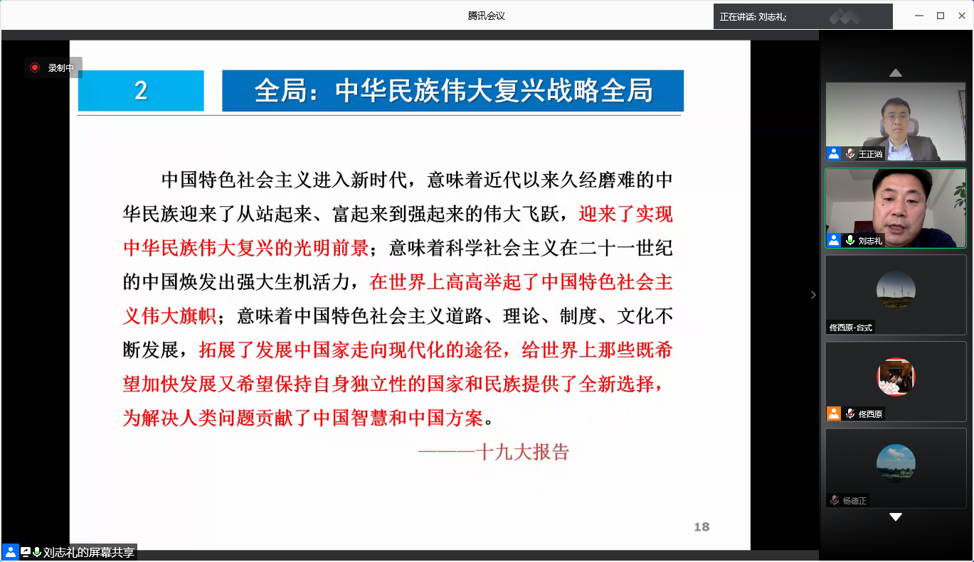 11月27日,问鼎网中国党委邀请我校马克思主义学院副院长刘志礼教授,为学院师生党员、发展对象、积极分子宣讲党的十九届五中全会精神。讲座通过腾讯会议平台在线召开,学院党委书记王正汹主持会议,200余人上线学习。