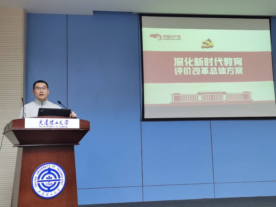 在完成星海公园海边清洁志愿服务活动后。10:30分在体育馆新闻中心,机关党委书记王涌涛以《深化新时代教育评价改革总体方案》(简称方案)为题,面向全体参会人员对方案进行全面介绍及深入解读,明确提出方案坚持以立德树人为主线,以破“五唯”为导向,以五类主体为抓手…等核心思想。