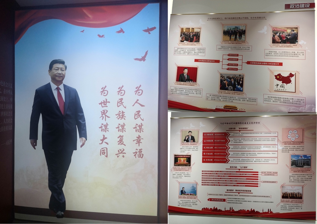 随后,讲解员结合习近平总书记自身的丰富经历和从政生涯,讲解其从河北正定、福建宁德、到浙江、上海再到中央的44年从政之路,让大家对习近平总书记的治国本领和为民情怀有了更深入的认识。以习近平总书记为代表的中国共产党人,顺应时代发展、理论结合实践,系统回答了新时代坚持和发展什么样的中国特色社会主义、怎样坚持和发展中国特色社会主义这个重大时代课题。