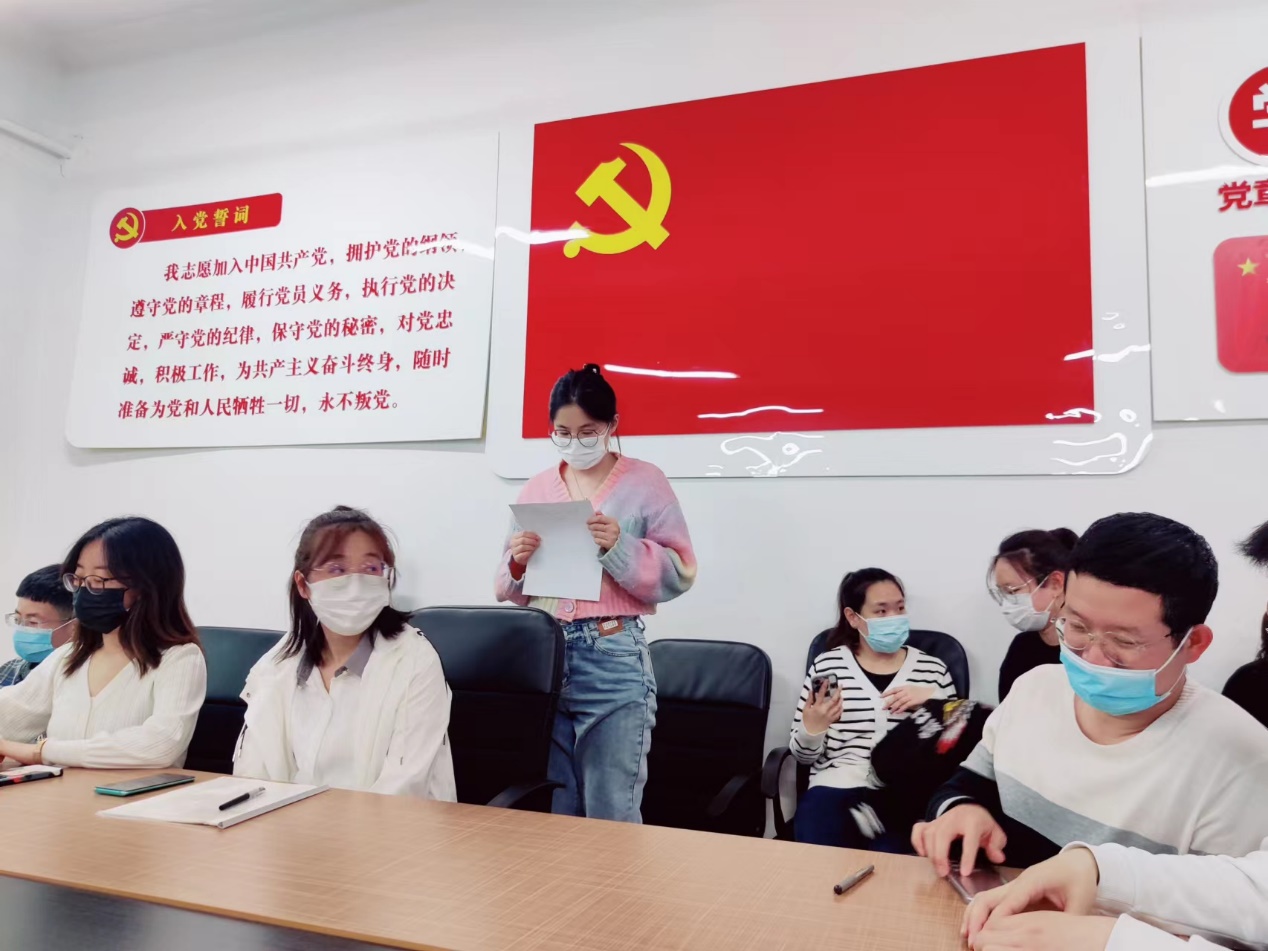 会议第二项为讨论杨凤云同志的预备党员转正环节,她宣读转正申请书,表达了自己的入党动机,如实分析了自己的优缺点,在学习生活中坚持理论知识学习,提高自己的政治思想素质,坚定共产主义理想信念。