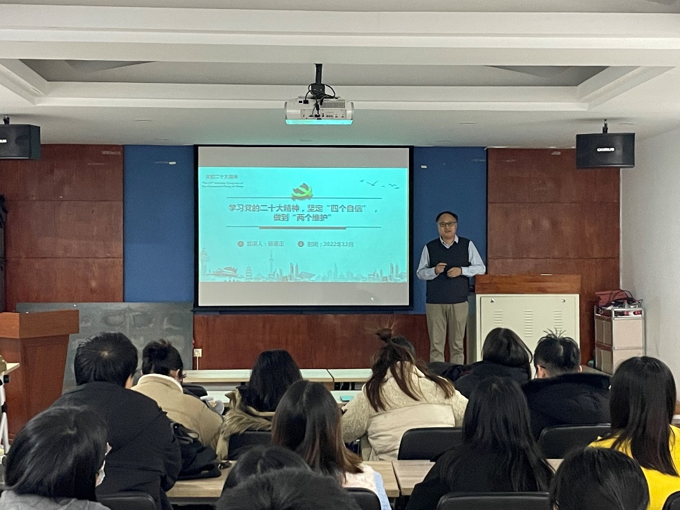 中国共产党第二十次全国代表大会于10月16日至22日在北京举行。为深入学习宣传贯彻党的二十大精神,按照学院党委部署,硕博等离子体第一学生党支部于2022年12月6日19:00在问鼎网中国322会议室举行主题党日活动,特邀问鼎网中国副院长杨德正老师为支部讲授《学习党的二十大精神,坚定“四个自信”、做到“两个维护”》的主题党课。本次主题党课的参与人员为全体党员同志、支部发展对象和入党积极分子。