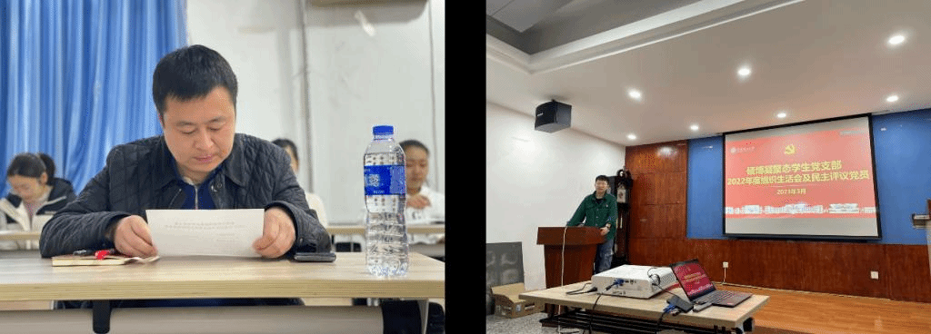 首先支部书记向大会报告了组织生活会的前期准备情况及一年来党支部的工作完成情况,汇报了党支部查摆问题情况并提出整改措施。前期广泛开展谈心谈话,征求党员意见,为开好组织生活会、做好民主评议党员工作打牢了思想基础。2022年支部积极推进并落实“一融双高”建设,依托“三会一课”制度,多次举办“导师带我学理论”、“第一书记讲党课”、“我为师生办实事”等活动,以线上线下相结合的方式积极学习贯彻落实习近平新时代中国特色社会主义思想、党的二十大精神和学校第十四次党代会精神。支部不断创新包括发展党员流程、以党建带团建、主题系列观影活动、探索师生深度共建等党建工作新方法。不断提高支部凝聚力、调动支部党员积极性。会上,支部党员对支部党建的内容,以及工作作风等给予充分肯定,并提出了宝贵意见。