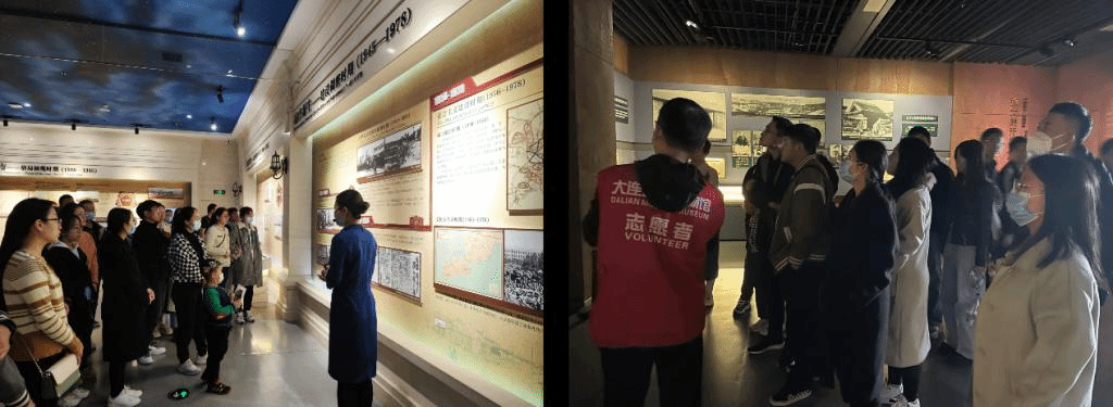 师生党员来到本次行程的第一站:辽宁省爱国主义教育基地——大连博物馆。在解说员深入浅出的讲解下,全体党员以1840-1949年近代大连历史为主线,先后参观了“旅大的海防与建设”,“中日甲午战争中的旅大”,“俄国租借旅大与港口城市的形成”,“日俄战争与日本殖民统治”,“近代大连中外文化的交流与融合”,“近代大连人民的反抗与斗争”,“大连解放与人民政权的建立”七个单元,以大连的历史文化与社会变迁为缩影,回顾了中国共产党团结带领人民光辉奋斗的百年历程。