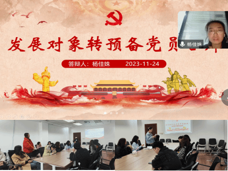 为进一步加强基层党组织建设,不断壮大党员队伍,为党组织注入新鲜血液,增强基层党组织的创造力、凝聚力和战斗力,硕博凝聚态第二学生党支部于2023年11月24日中午12时30分在科技园C座510会议室采取线上与线下相结合的方式召开了支部党员大会。本次会议主要内容为发展对象杨佳姝同志转为预备党员的表决与讨论以及党支部换届选举工作,本次会议由支委杨秋萍同志主持。