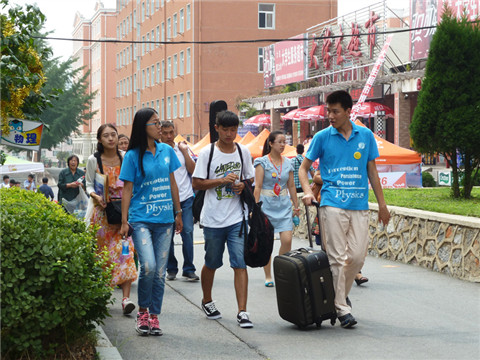 物理与光电工程学院秉承多年来敏学笃行的优良传统,以“逐梦青春,你我同行”为今年迎新工作主题,突出互帮互助的同学情谊在学生成长成才过程中的高度重要性,以学院培养出的“中国好寝室——兄弟寝”为着眼点,对迎新宣传品和新生报到环节进行精心设计;学院在迎新现场为2014级新生们准备了精美的“梦想卡片”,激励新一批的物理学子能够在大学四年中志存高远、不忘初心,努力发展自我,成就未来。在“物理蓝”的点缀下,物理与光电工程学院的迎新工作为新生和家长留下深刻记忆。