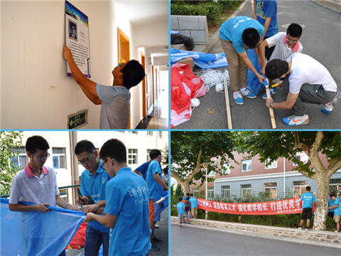 迎新工作是物理与光电工程学院精英人才培养工作的重要环节,长期以来受到学院高度重视。2014年物理与光电工程学院共招收本科新生221人。本次迎新工作由学院学生工作办公室负责组织开展,由学院团委、学生会、社团联合会合力承办,力求为2014级新生同学提供一个热情、积极,充满物理特色的大学生活“初体验”。8月21日,学院团委、学生会、社团联合会主要学生干部提前返回学校,开始场地规划、宣传品设计等方面工作;8月29日,新生宿舍楼内外各项布置均已悬挂张贴完毕,新生寝室亦打扫整洁,学院2014年迎新工作团队整装待发。