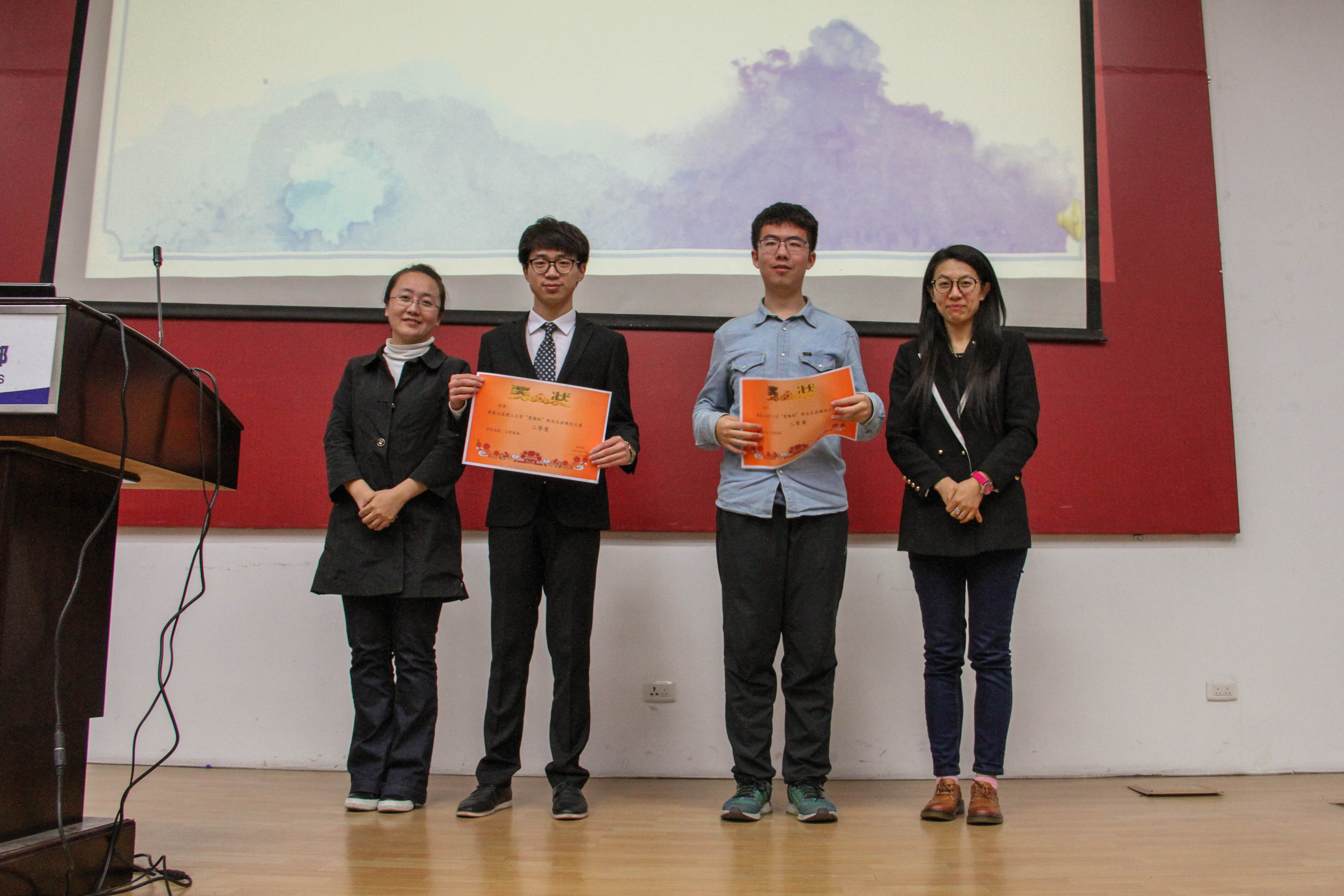 最终,吕响、李鑫、许威、谢冰荣获三等奖;董新宇、聂旭康荣获二等奖;许少迪、王序涛荣获一等奖。获奖选手上台领奖并和颁奖嘉宾合影留念,至此本次大赛拉下了帷幕。