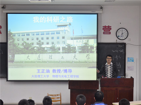 11月12日下午,物理与光电工程学院新生入学教育系列讲座之“我的科研之路”主题讲座于综一158顺利进行。本场讲座以王正汹教授的科研经历和感受为线索,通过王正汹教授与大家分享自己的科研之旅,来加深2014级本科生对物理专业科研前景的了解与认识,并树立远大的科研理想,2014级辅导员梁勇老师出席本次讲座。