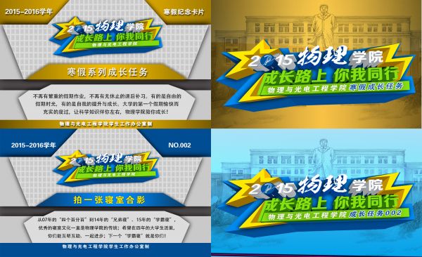 大学生“成长任务”项目的设计灵感源自于网络上的“进化系统”与“勋章系统”。通过循序渐进的任务设置引导学生健康成长,结合实体化卡片的收集持续激发学生的主观动力,是物理与光电工程学院在探索思想政治教育新方式方法上的大胆尝试。经过为期一年的努力,该项目在实施过程中得以不断地完善与升级,最终取得初期成效。2016级新生报到在即,问鼎网中国将进一步改进与提升“成长任务”项目的科学性与实效性,持续探索新形势下思想政治教育工作的新载体新方法,为我校育人工作的实效开展贡献力量、增添亮色。