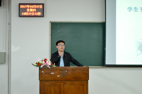 大会第一项——奏唱团歌结束后,紧接着进入主要环节,主讲嘉宾周学飞老师为团学骨干们分享学生干日常工作中常用文体的写作格式和写作技巧。周学飞老师从日常生活、求职应聘、工作岗位三个方面告诉同学们写作技能是大学生必备技能之一。接着他以“如何写好一篇新闻”为中心,不断结合具体事例强调新闻的实效性与真实性,并从新闻标题、导语、主题、背景、结语几个小方面与团学骨干们分享写作技巧。周学飞老师强调,当今社会是一个快速阅读的社会,好的标题变得尤为重要。他将我校与大连日报关于相同事件的两篇新闻报道做比较,由于大连日报的标题更吸引人,阅读量因此有着截然不同的差别。