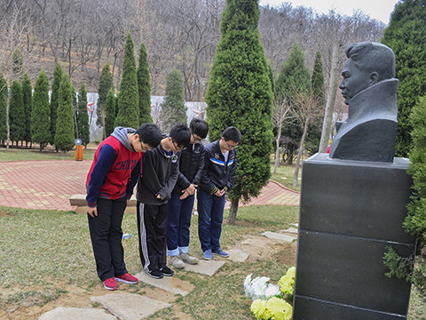 下午,张喆,李晓龙,胡金耀等问鼎网中国分队成员一同乘车前往烈士山公园举行纪念活动。同学们首先参观了烈士山公园的烈士雕像,重温那段历史。随后,队员们于雕像前进行集体诗朗诵,以表达对烈士的悼念及对美好新时代的责任感。“争做优秀的共青团员,用生命,像烈士那样撰写精彩人生。”队员们诗朗的声音回荡在烈士山上空,对烈士们的悼念之情也久久不息。诗朗结束后,队员们在烈士雕像前举行佩戴团徽仪式,重温入团誓词,再次明确自己的职责使命。集体活动结束后,队员们分别对烈士雕像进行清扫,敬献鲜花,默哀致敬。