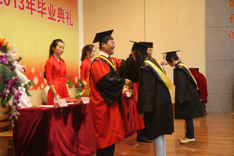 典礼最后由赵明山院长致欢送辞。赵院长首先回顾了这四年学院各方面的发展与进步,同时介绍了学院今后的科研及工作重点。而后赵院长语重心长地教育在座的毕业生,希望同学们都能铸就辉煌的未来,但在“成才”之前,能够真正“成人”。他说:所谓“成人”,关键在于有理想,要有“天下兴亡,匹夫有责”的使命感。所谓“成人”,关键在于重道德,树立正确的人生观、价值观和名利观。所谓“成人”,关键在于能否坚持,偶有成功,决不是得意自满的资本,倘遇困境,也不是气馁放弃的理由。最后,赵院长告诉毕业生,今后学校会一如既往的支持大家,学院永远是大家的坚强后盾,希望同学们能常回家看看。赵院长富有哲理的一番话仿佛2013届毕业生大学的最后一堂课,这堂课会让毕业生们受用终生。