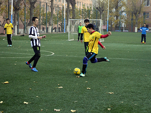 伴随着裁判的一声哨响,比赛正式开始。双方队员随即展开了激烈的角逐。你拼我抢,过人,射门,一系列精彩的动作直让观众欢呼。精彩的传球、绝佳的配合、坚固的防守,无一不体现出了此次比赛队员拼搏的精神。上半场比赛中,物理的队员们凭借着队友之间的默契,最终以4:1轻松结束了上半场的比赛。中场稍事休息。此间,球队的一些老队员们纷纷传授自己的经验。打法,阵型等要点在老队员的指点下边的清晰起来。