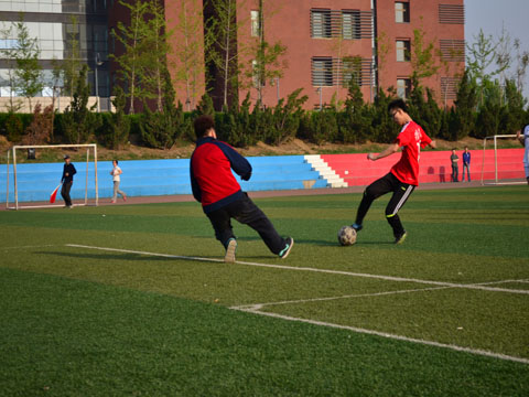 4月30日下午,由大连理工大学足球协会举办的十一人制足球赛,物理与光电工程学院对阵创新实践学院的比赛在西部足球场打响。比赛一开始,双方队员很明显还都在适应“十一人”的节奏。不过显然,问鼎网中国的队员更快进入了状态,队形,站位,进攻防守已经较为默契的展开。