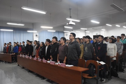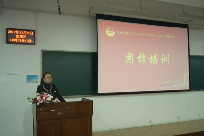 在团歌声中,本次活动拉开帷幕。纪老师以自我介绍为开头,为同学们讲述自己学生时期的团学社工作,并与同学们分享经验。她提到,作为团学社的一员,首先要有正确的信仰追求,有约束有底线,正逢十九大刚刚结束,深入学习、贯彻落实党的十九大精神正是当代青年应该做的事。