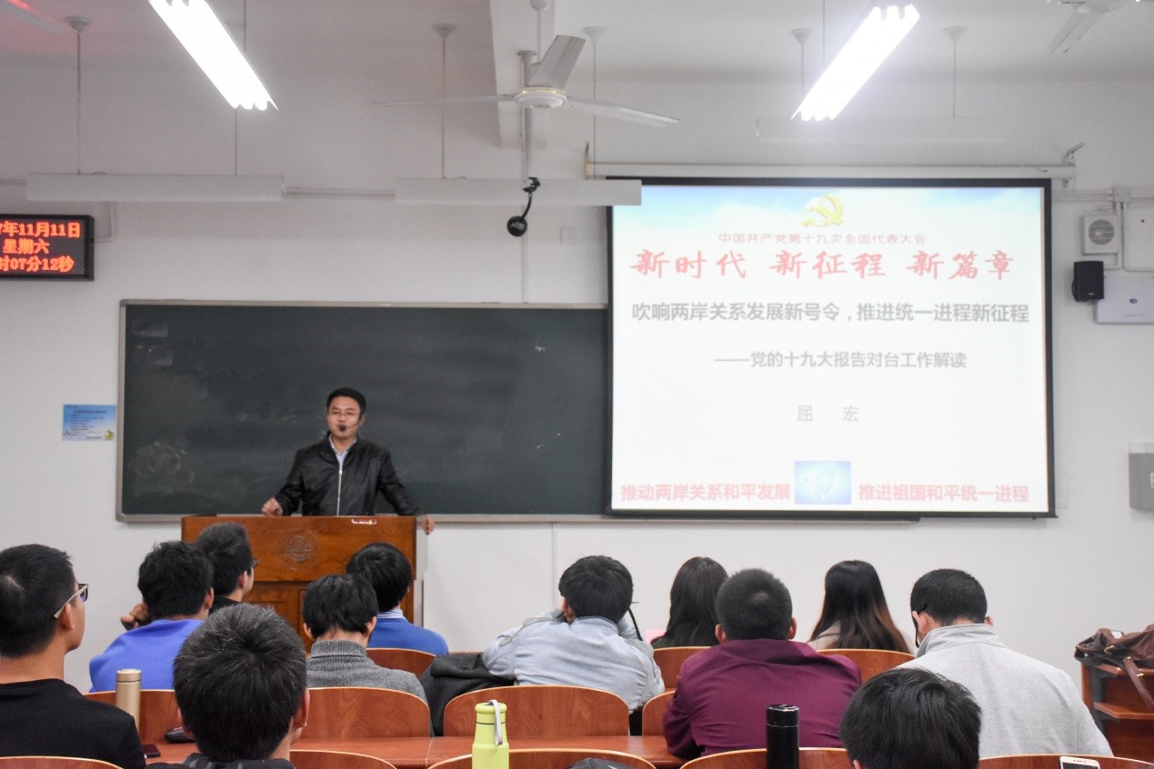 天下兴亡,匹夫有责,无论征战或和平,学生总是走在历史的最前沿,其对台湾问题的认知与态度,终将左右民族分合潮流。本次主题讲座,为同学们细致解读了十九大的对台方针,让同学们了解台海形势的新走向。