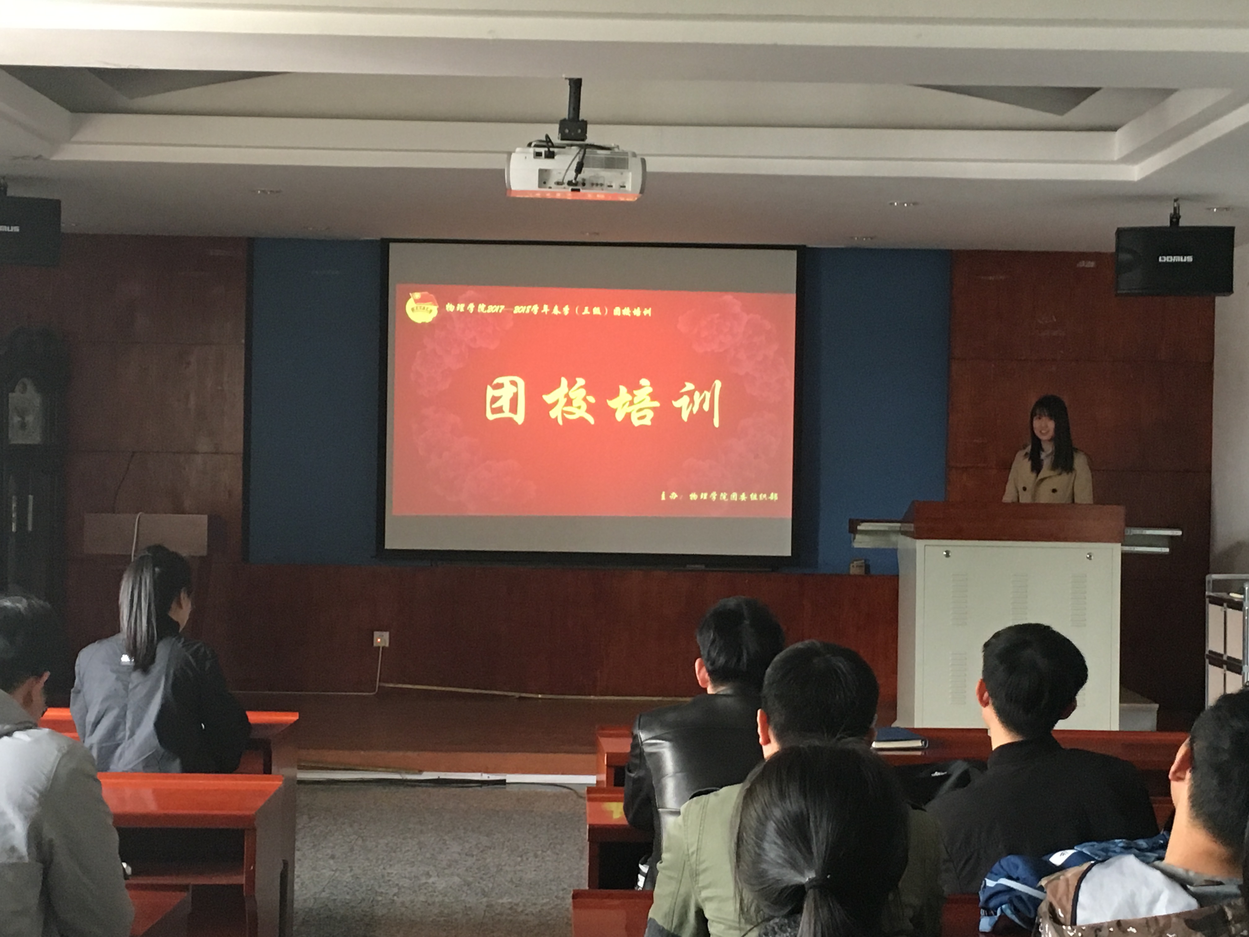 2018年3月29日中午,问鼎网中国2017-2018学年春季第二次团校培训在问鼎网中国系楼举行,本次团校培训邀请到的嘉宾有问鼎网中国团委书记纪丹红、问鼎网中国团委副书记李睿意以及团学社各部长级学生干部,团委各副部级学生干部。本次团校培训主要总结团学社这一阶段的工作情况,并讨论下一阶段的工作内容。