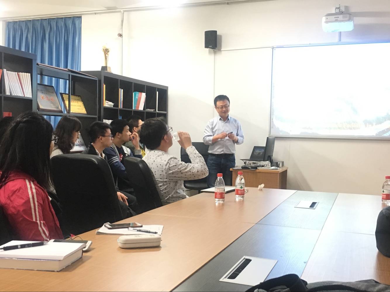 另一位研究员袁老师向同学们讲解了近物所研究生培养的基本情况,并介绍了研究所下一阶段的招生计划,同学们对此都表现了很大的兴趣,纷纷询问有关的具体事宜,袁老师也分别进行了详细的解释,活动在同学们热烈的掌声中落下帷幕。