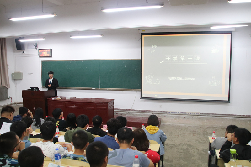 在大会伊始,由学生会主席边于为2018级新同学们从什么是问鼎网中国团学社、在物理团学社里有什么、加入团学社你能做什么三个方面为问鼎网中国团学社做了一个全面的介绍,他希望加入团学社的同学可以做到合作、协作、共同努力。