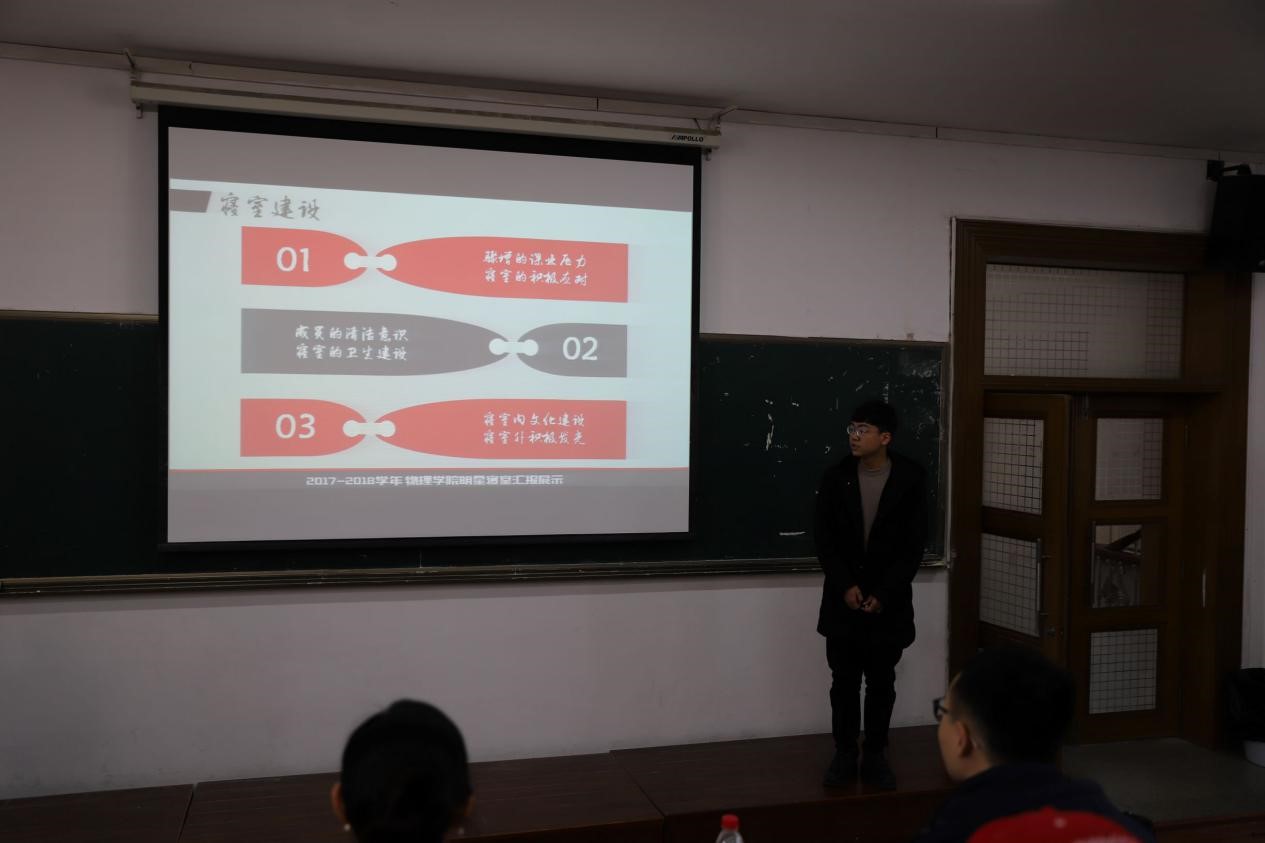 接下来,11间获评“优秀结项”的明星寝室代表分别进行了寝室建设汇报及经验交流。主要内容为成员介绍,寝室特点,遇到的问题,具体建设举措,给低年级同学的建议等。各位“明星寝室代表”围绕着自己寝室的特色称号,分别对寝室的成员构成、团结建设、特色建设等方面进行介绍,获评“优秀结项”的寝室各具特点、各有侧重,展现了学院学子携手同行的青春活力。