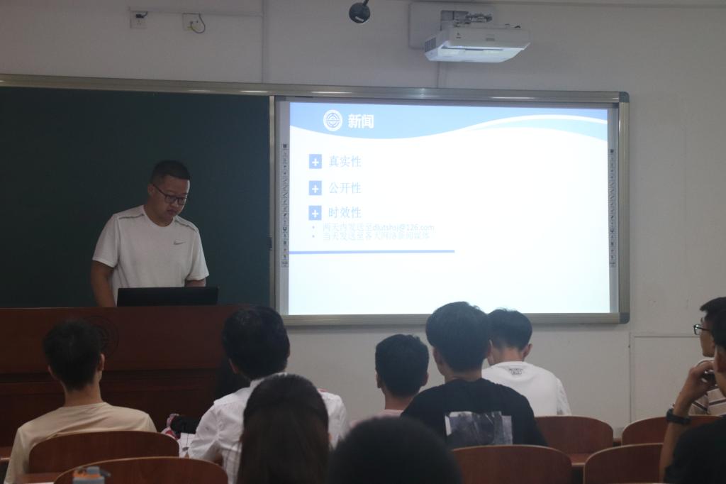此次培训会主要针对暑期寻访老校友实践活动的程序和注意事项进行讲解和展开。首先由运载工程与力学学部实践部部长李鹏飞讲述寻访老校友暑假实践活动中后期材料准备的注意事项。其后,光电工程与仪器科学学院实践部部长于洋讲述投递新闻时优先选择的新闻媒体和新闻的写法以及写新闻时所需注意的真实性、公开性、实效性。最后,经济管理学院实践部部长陈润之解读寻访老校友专项实践文件并概述实践过程中的注意事项,如联系老校友的方式、时间选择、说话方式以及拍照技巧。