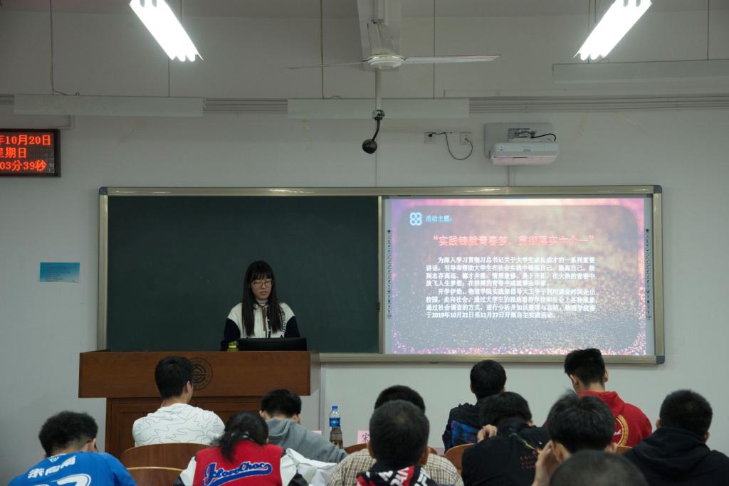 2019年10月20日18:00,2019-2020自主实践月活动在综合二号教学楼A306教室顺利举行。出席本次活动的嘉宾有学生会主席王栋梁,常务副主席宋玺尧,组织部部长温荣贤,实践部部长唐雯月和实践部副部长陶艾龙。