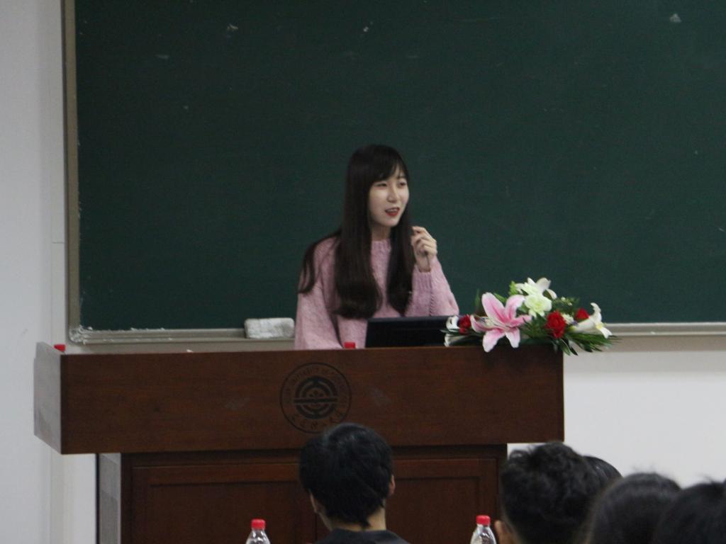而后,2018级辅导员张胜男老师应纪老师的邀请发表讲话,表达自己对接下来与同学们一同工作、学习的生活的憧憬。