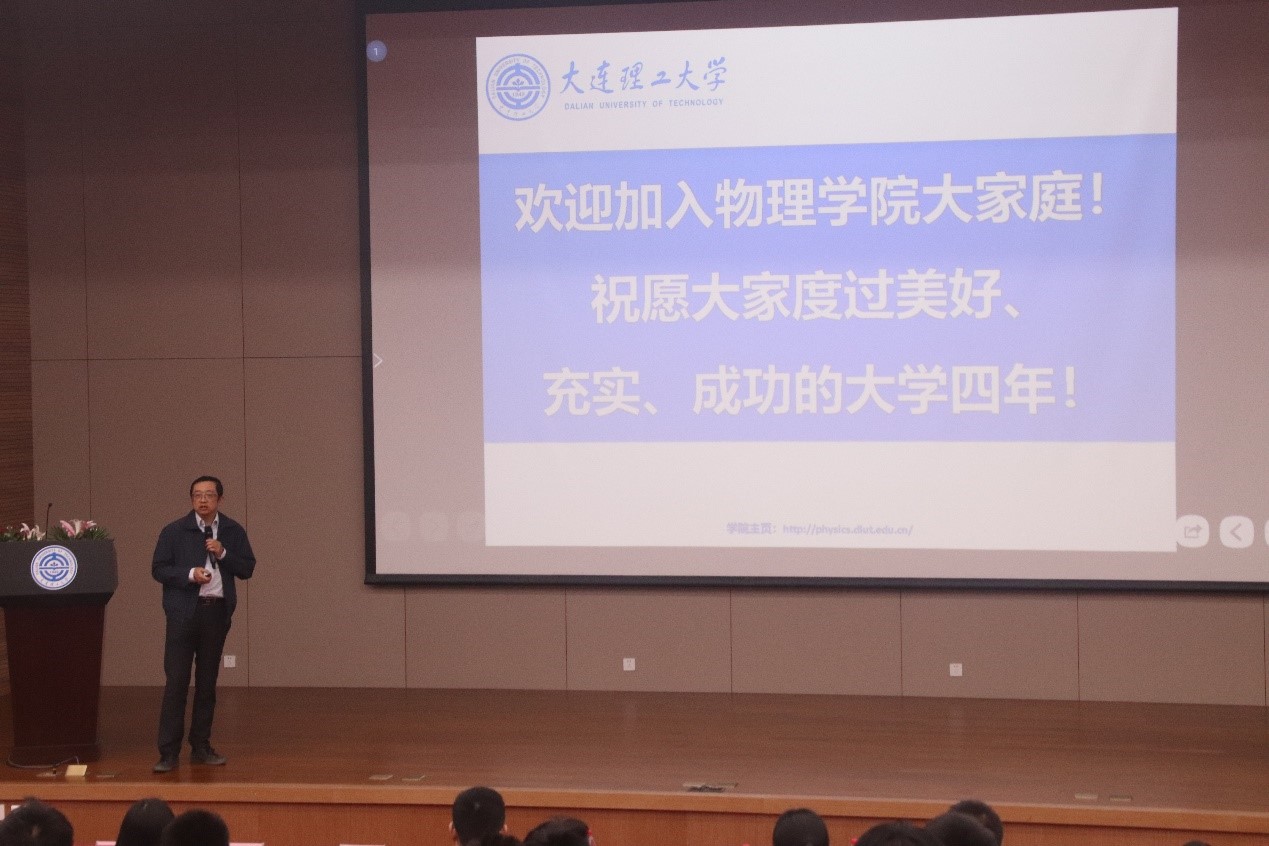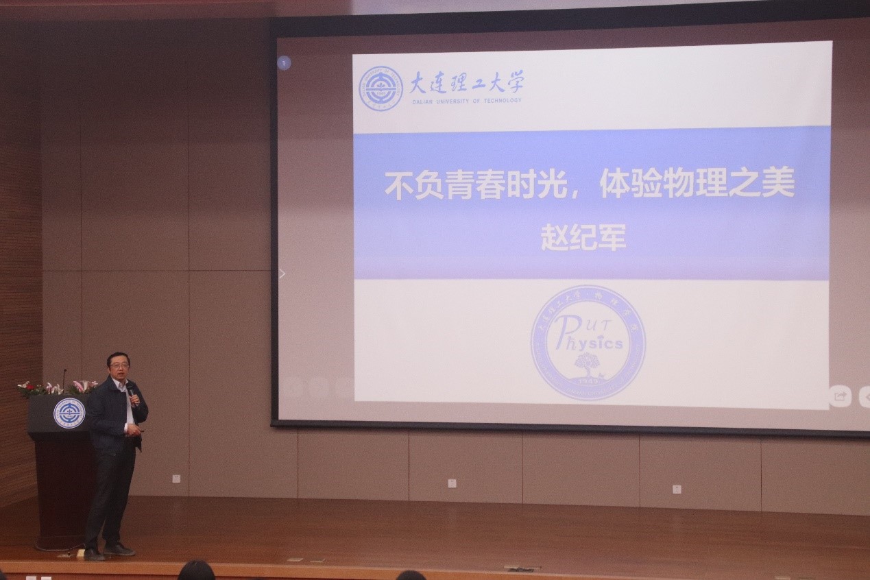 2020年9月30日下午15:00,问鼎网中国院长赵纪军教授在伯川图书馆报告厅为新生讲授院长第一课,为2020届的新生们打开知识的殿堂。赵纪军院长本次讲座的主题为“不负青春时光,体验物理之美”。