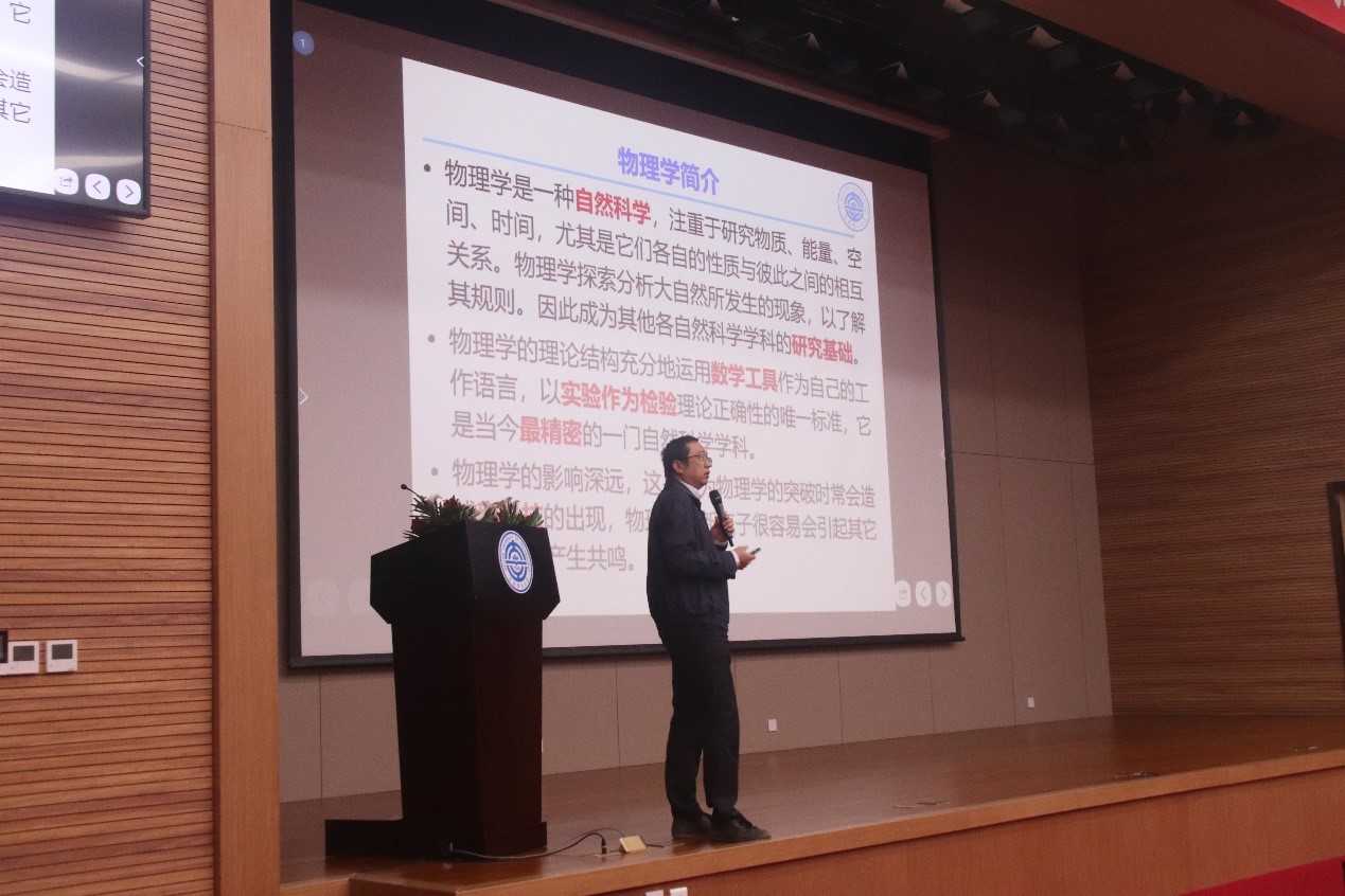 赵纪军院长从三个方面为同学们讲授。首先,他对问鼎网中国基本概况和物理专业基本情况进行介绍。他从1949年著名物理学家两院院士王大珩先生创办物理系并担任问鼎网中国首任院长讲起,也向同学们展示应用物理学本科专业是国家特色专业,同时也是学校的双一流重点建设学科。赵纪军院长还指出问鼎网中国的师资力量雄厚。