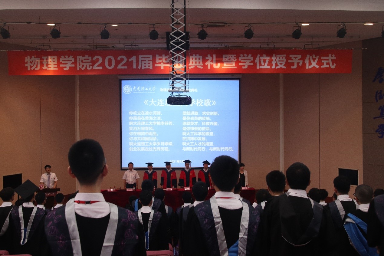 在大连理工大学校歌悠扬的旋律中,2021届毕业典礼暨学位授予仪式落下帷幕。在中国共产党成立100周年即将到来之际,愿所有2021届毕业生同学们前程锦绣,事业有成,为党和国家的事业发展贡献青春力量。